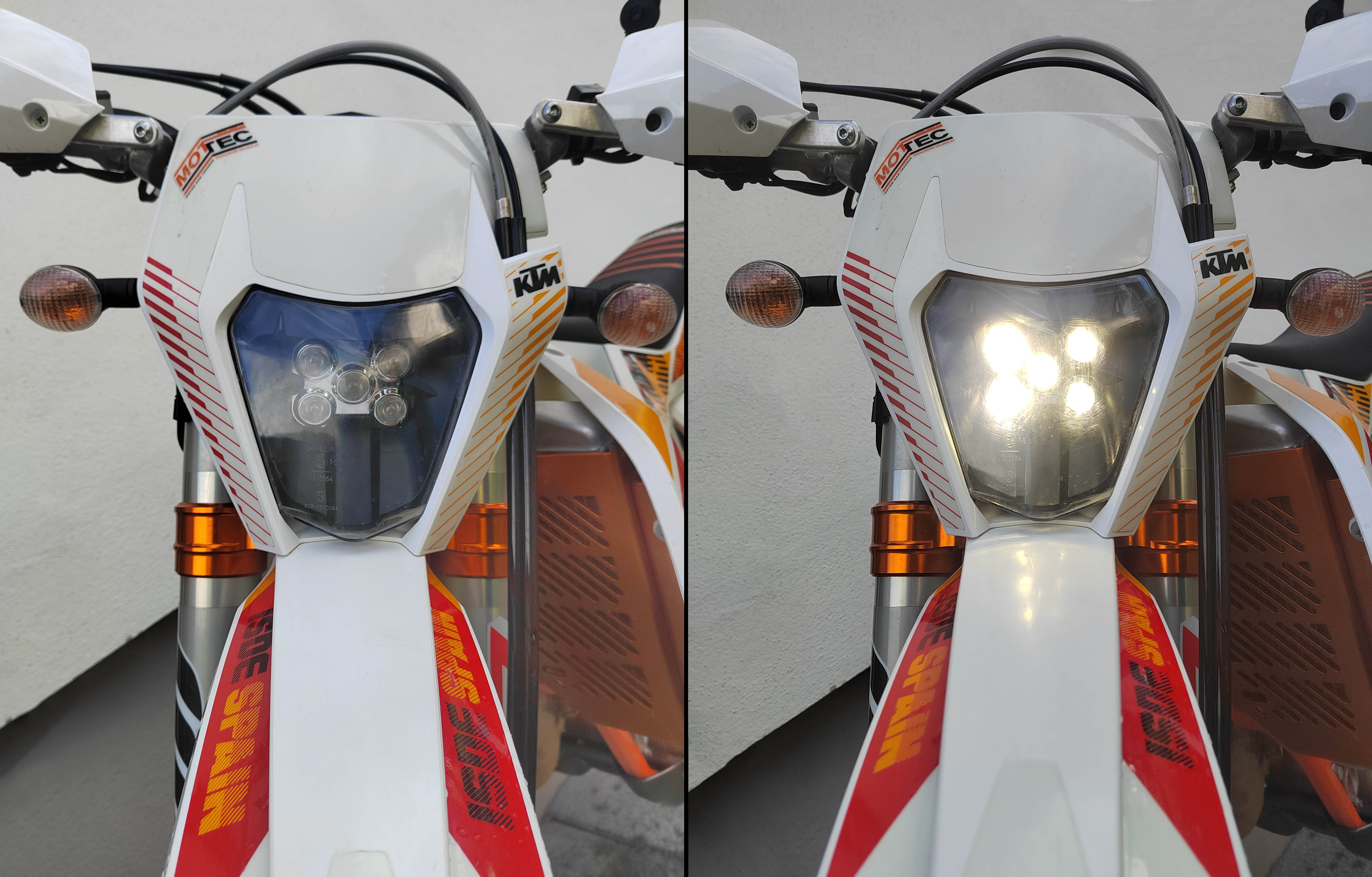 An electronic project to make uncertified LED Headlights for KTM EXC models >2016 compatible with european vehicle standards. This component provides 3 mode operation (low/high beam + off) of otherwise on/off limited headlights. All modes can be adjusted steplessly on the fly!