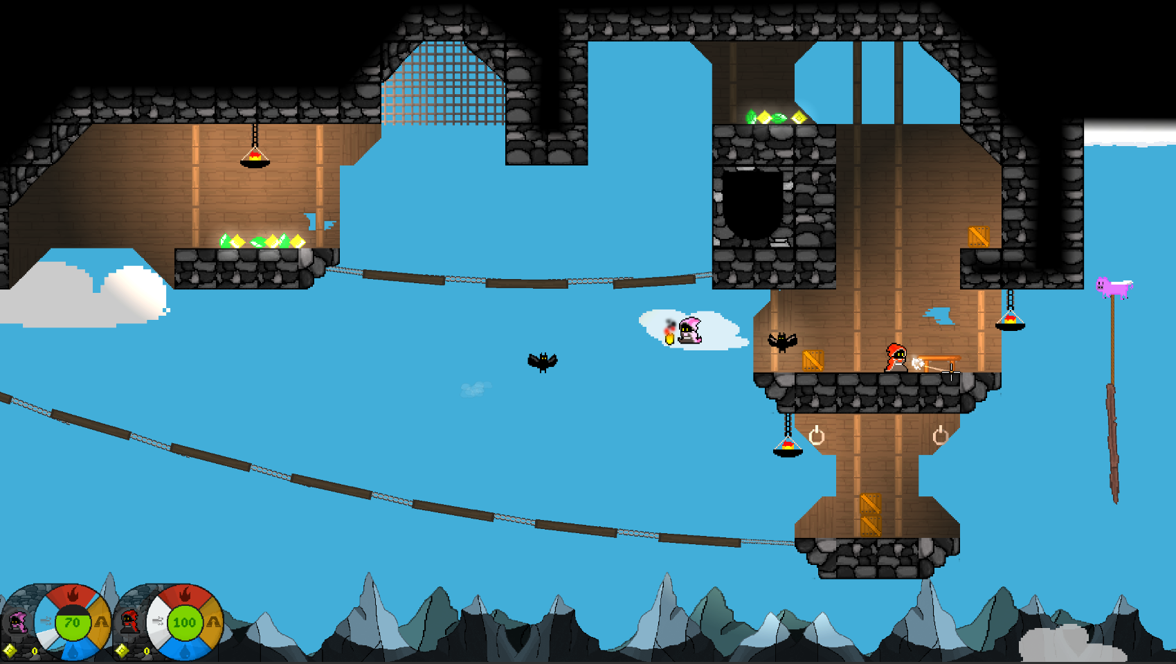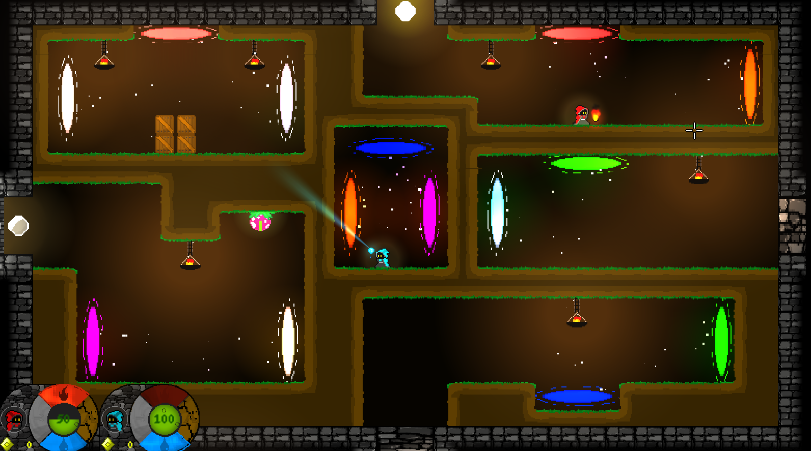 is an action, jump n' run inspired by clasical games and physics puzzles. WizWorld gives you the freedoom to swing with a grappling hook that can almost grab anything. Casting powerfull spells based on the four elements. Fight monsters in arena style levels, swing for your live in chase levels or fight with or against your friends in local multiplayer with up to 4 players!